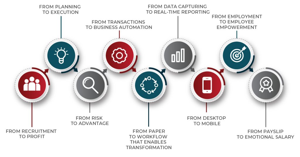 The unified design of the solution enables seamless integration between the various Employee Life Cycle Functionalities